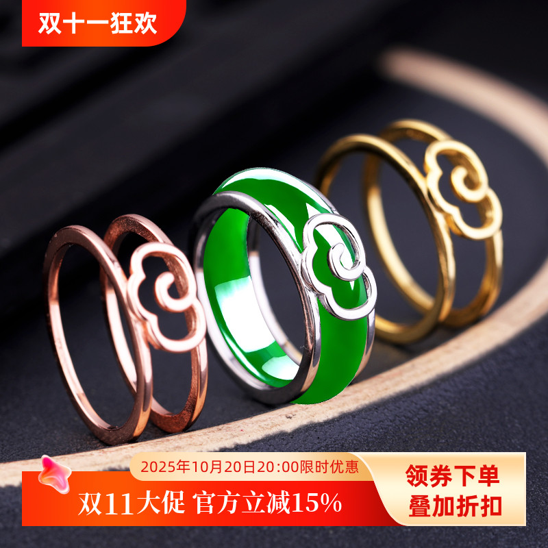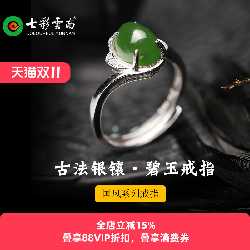 七彩云南和田玉碧玉戒指银镶嵌玉石新中式国风款玉环国风礼物礼物