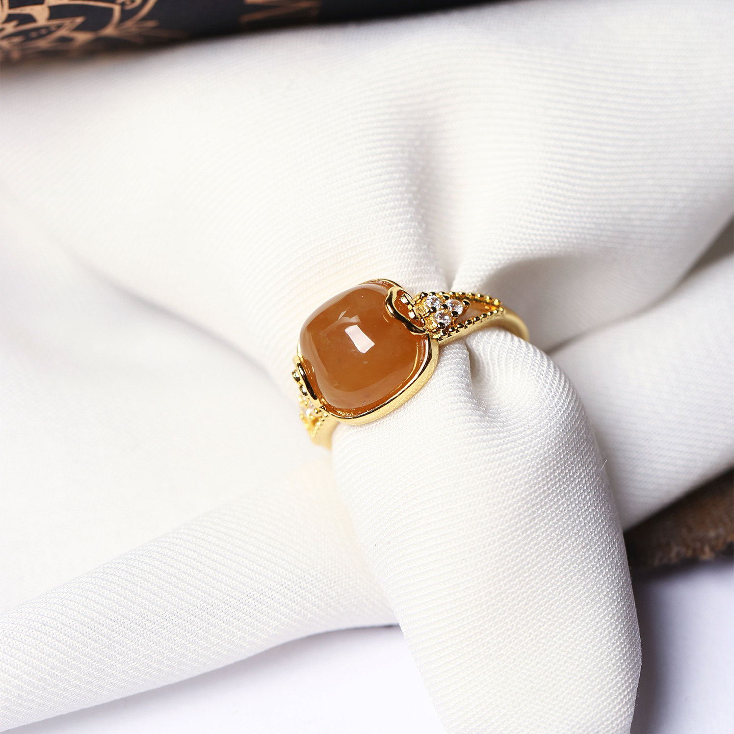 镶嵌蜜蜡翡翠玉石戒指空托男女时尚个性高级轻奢网红食指指环空托