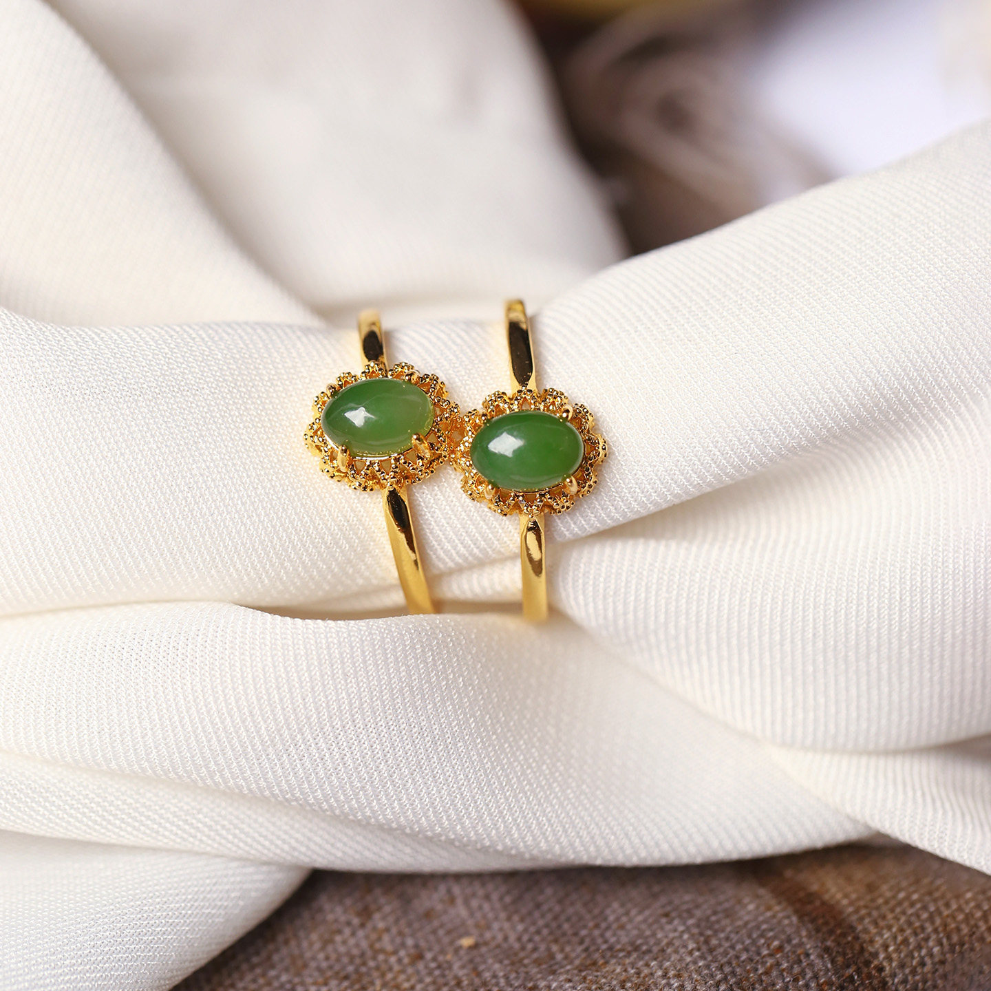 S925纯银民族风戒指冰种镶嵌天然碧玉翡翠玉石指环轻奢高级感女士