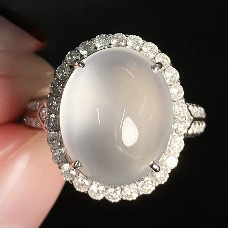 天然玉髓玉石冰种白底蛋戒指镀S925银镶嵌优雅气质大气可调节指环