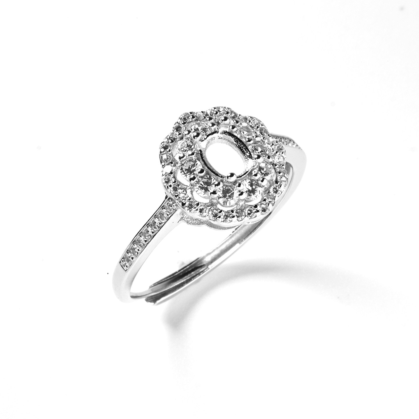 S925纯银戒指空托女镶嵌翡翠绿松石玉石戒面戒托8*10 5*7 7*9 6*8
