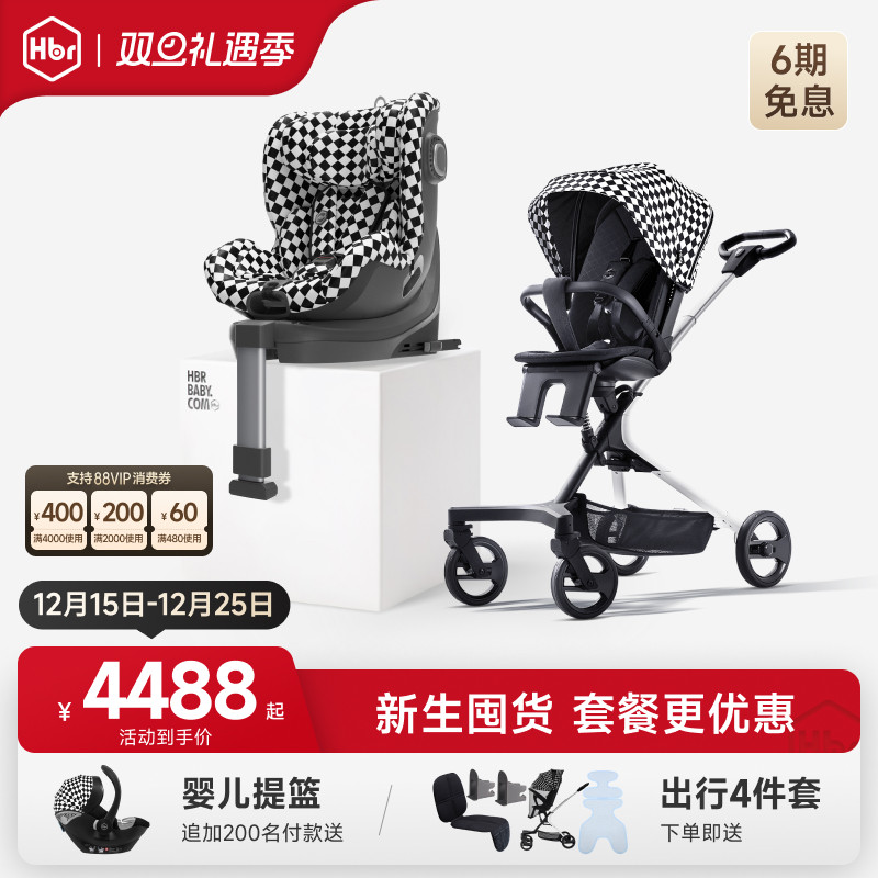 HBR虎贝尔超值套餐E360儿童安全座椅遛娃神器婴儿推车高景观双向
