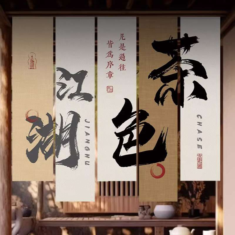 意境营造书法挂布茶室国风中式小院氛围长条竖幅装饰背景布旗装饰