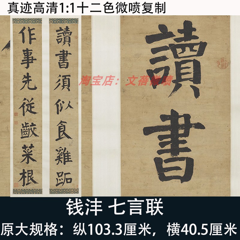 钱沣楷书书法七言联台北故宫藏高清微喷复制品竖幅挂轴装饰画对联