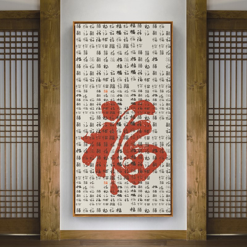 新款百福图新中式禅意玄关装饰画竖幅书法文字壁画红色福字喜庆祐