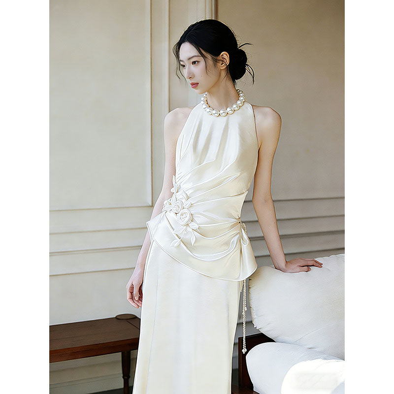 敬酒服晚礼服2021新款高端奢华挂脖名媛气质生日宴会主持走秀晚装