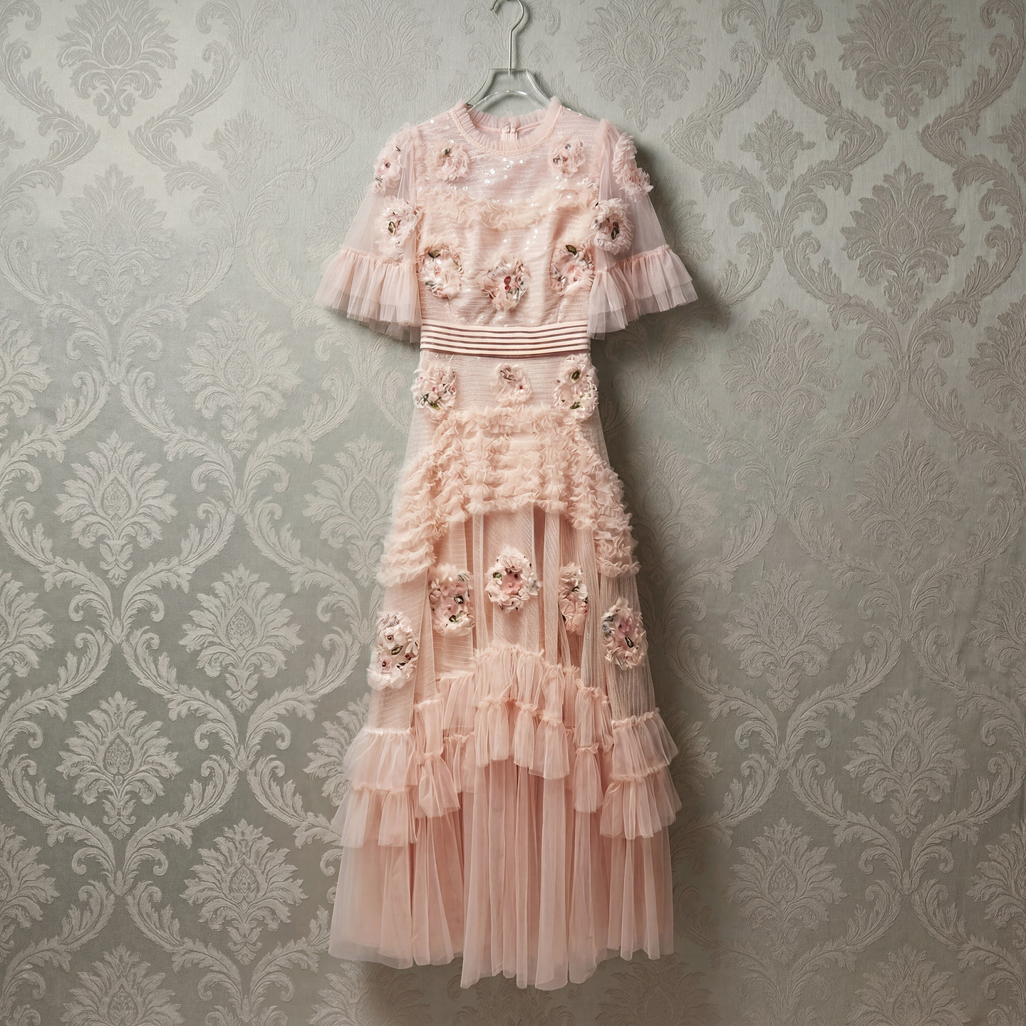 优雅女人味重工刺绣订珠收腰显瘦长裙气质婚礼宴会礼服连衣裙晚装