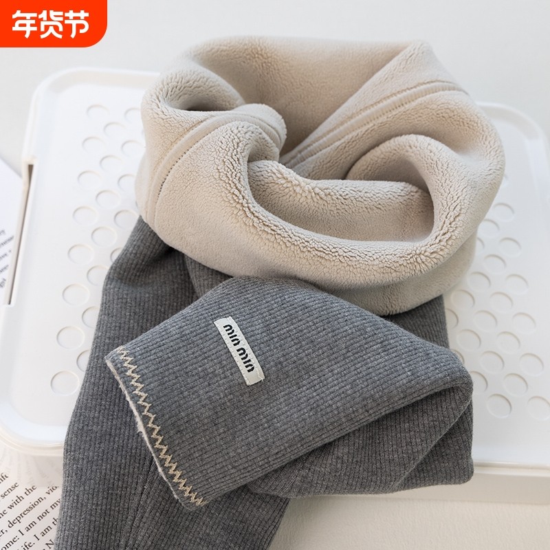 女童打底裤秋冬加绒一体高腰2024新款女宝外穿加厚羊羔绒保暖秋裤