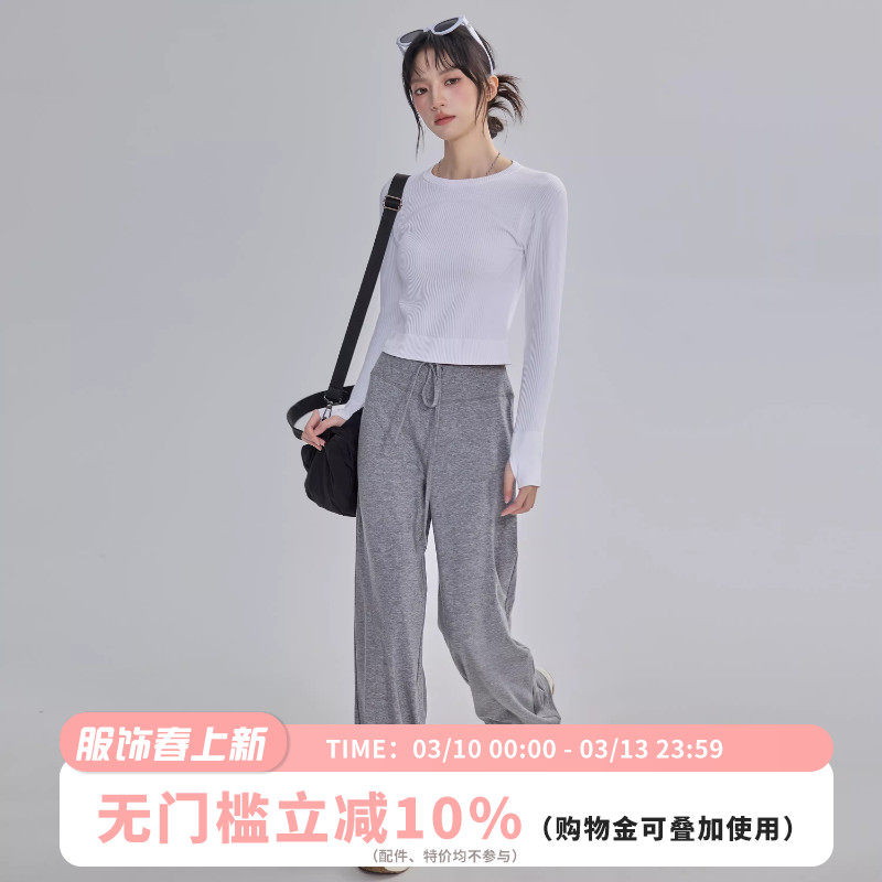 GYMNA运动健身长袖学院风瑜伽服女显瘦跑步速干衣网红宽松罩衫春