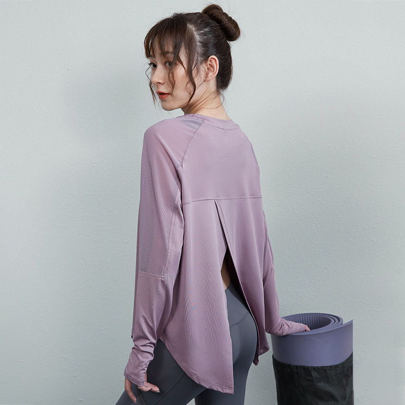 健身女孩透气瑜伽服罩衫薄修身显瘦运动上衣普拉提跑步训练长袖新