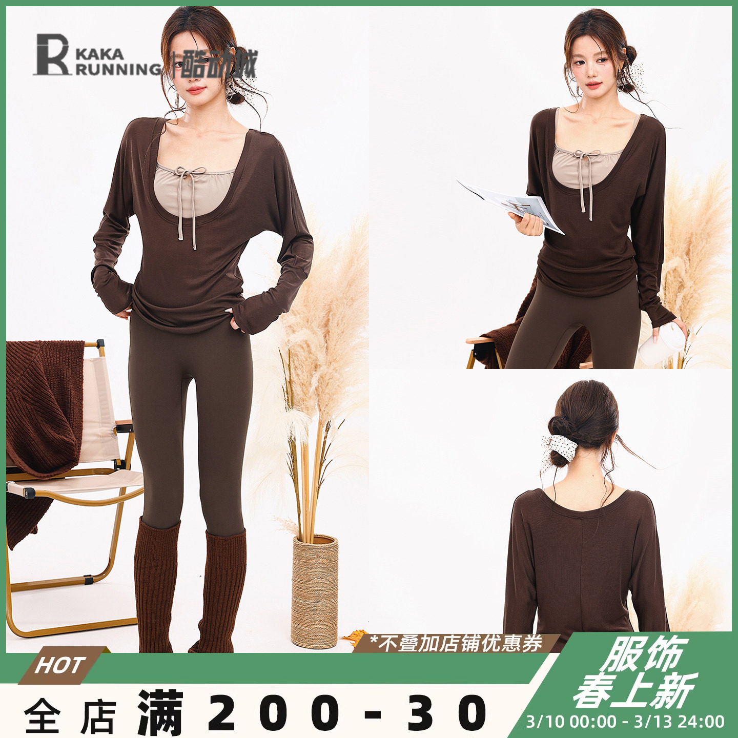 奔跑吧卡卡瑜伽服女显瘦遮肉健身服低圆领运动上衣外穿长袖T恤秋