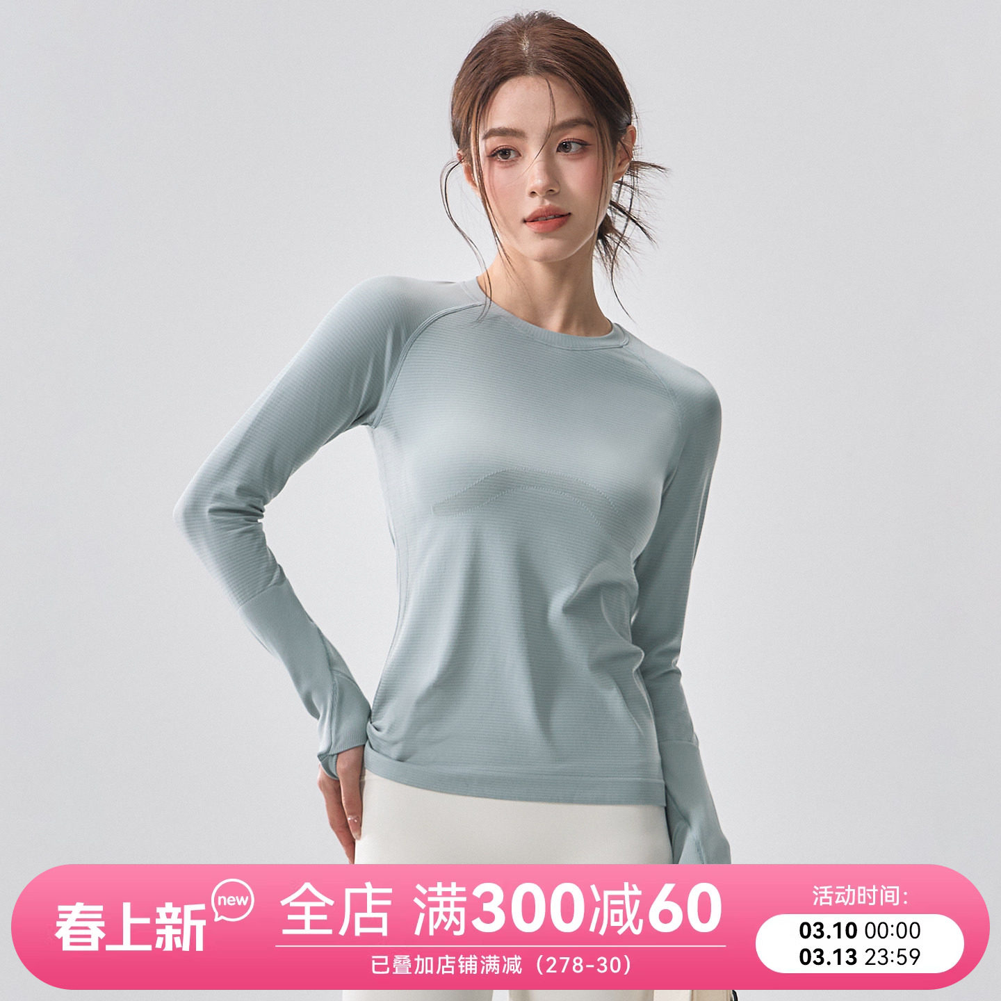 云端贝壳圆领瑜伽服女显瘦运动长袖T恤普拉提跑步训练健身上衣新