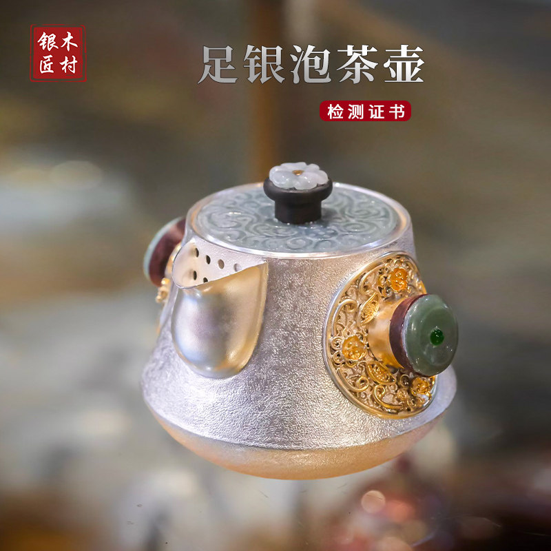 银壶泡茶壶 纯银999快客壶手工便携式宝瓶盖碗足银防烫手抓壶