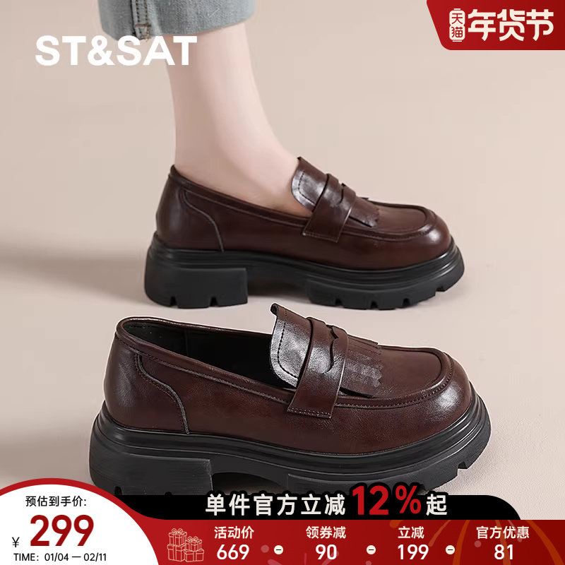 星期六大码41到43厚底豆豆乐福小皮鞋女2025新款秋英伦一脚蹬懒人