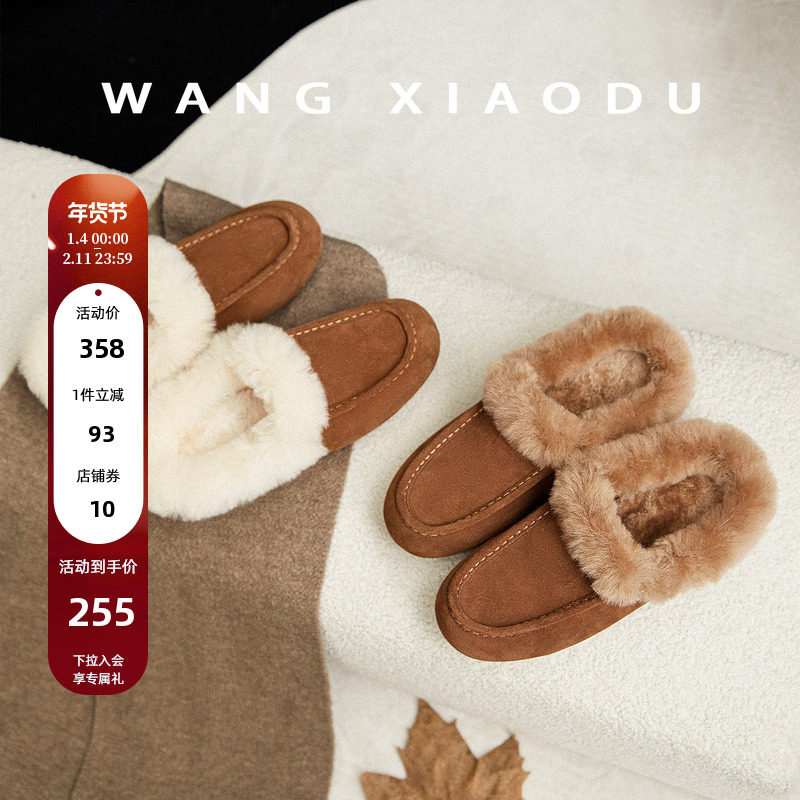 秋冬季加绒保暖毛毛鞋女一脚蹬懒人豆豆鞋乐福平底舒适老北京布鞋