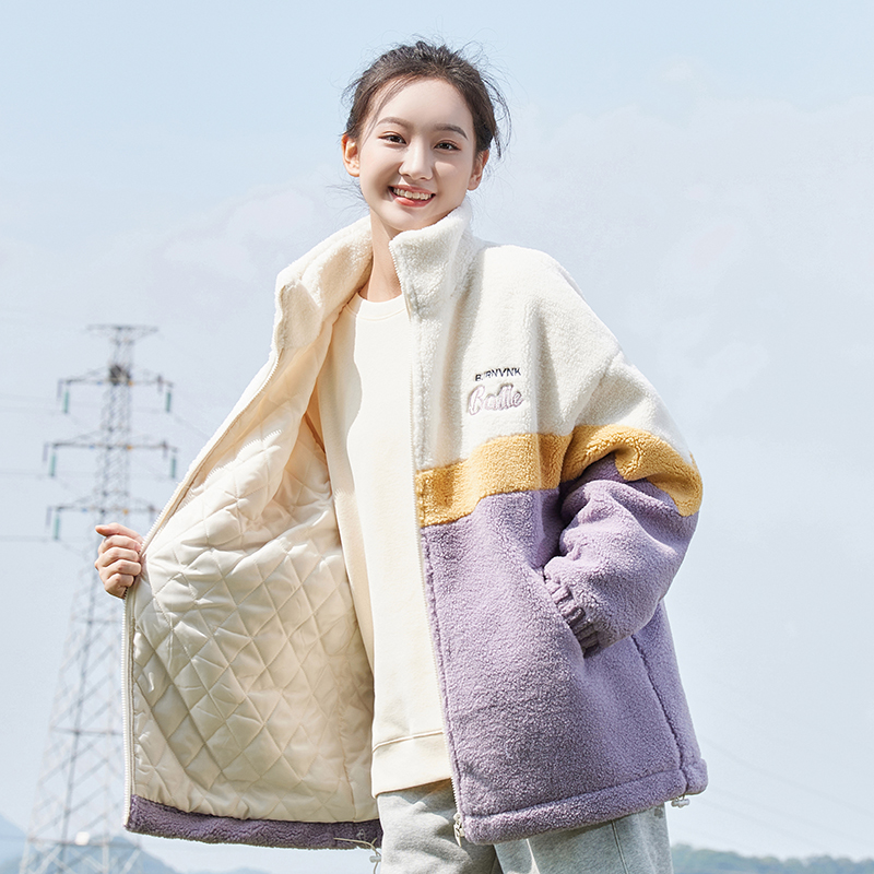 羊羔毛外套棉服少女秋冬装大童加厚拉链上衣初中高中学生可爱棉衣