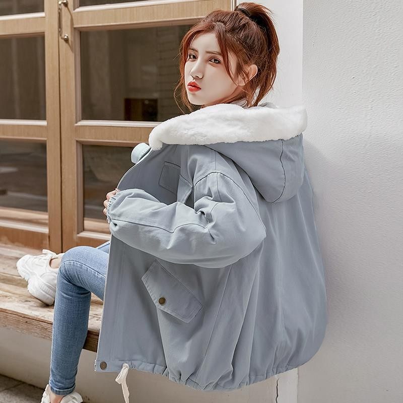 初中生加绒加厚外套少女冬装2024年新款高中学生宽松羊羔毛棉衣服