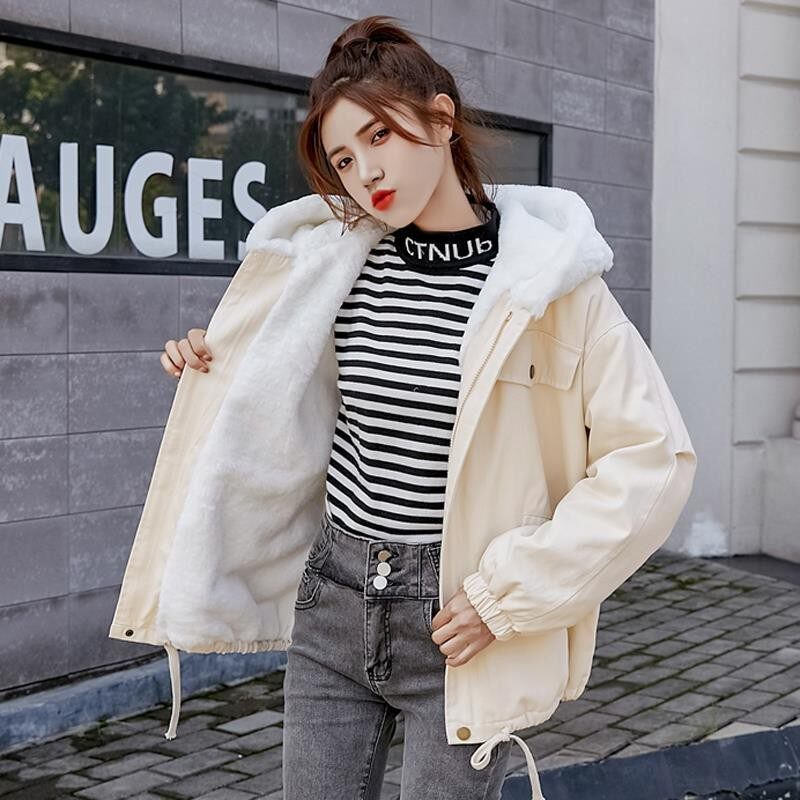 高中生羊羔毛外套2025冬装毛呢上衣连帽初中学生少女棉服加厚棉衣
