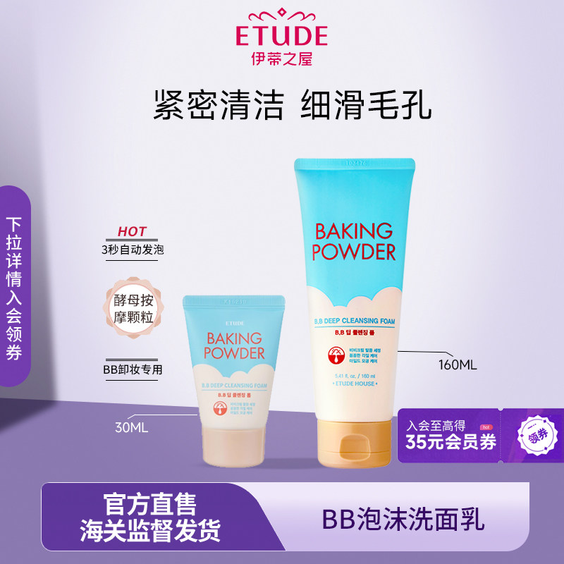 ETUDE伊蒂之屋爱丽小屋酵母BB霜专用洗面奶毛孔清洁卸妆洁面乳
