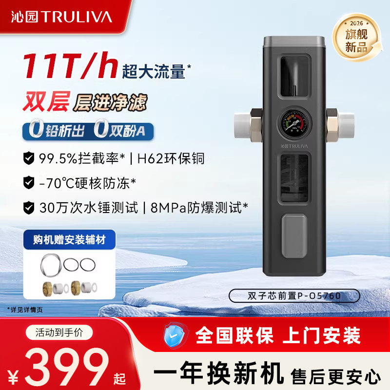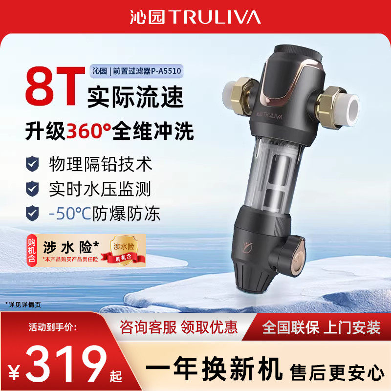 沁园官方新品前置过滤器家用厨下自来水全屋防爆大流量过滤净水器