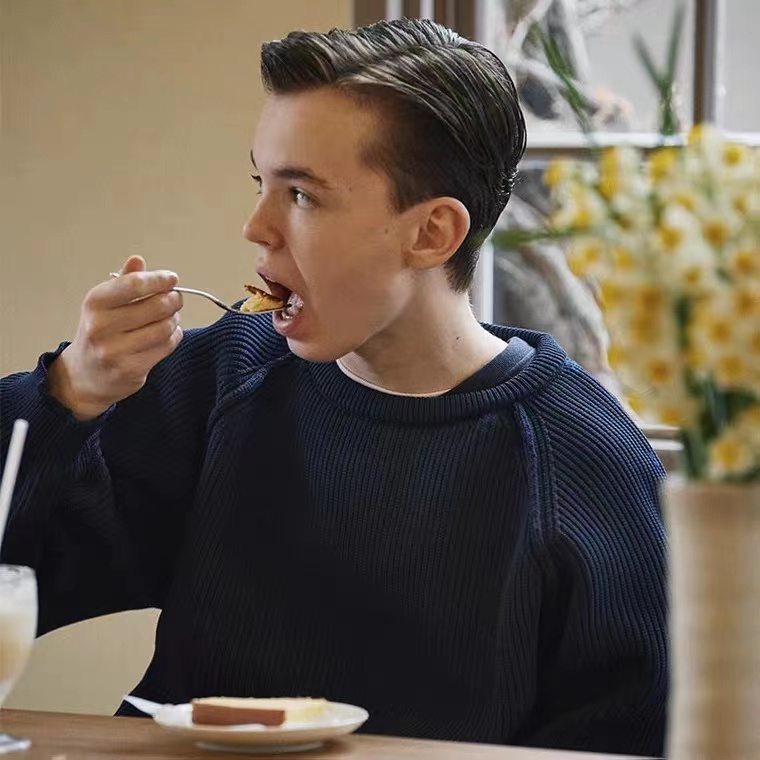 日系毛边破洞圆领毛衣男女简约宽松高街复古纯色做旧套头针织毛衫