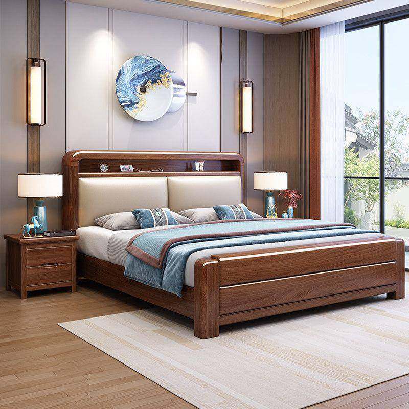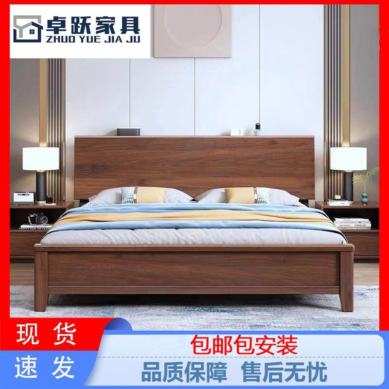 实木床现代简约胡桃木主卧1.5米双人床1.8米主卧轻奢婚房双人床