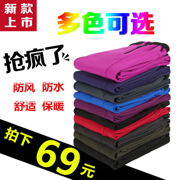【天天特价】冬季户外冲锋裤男女加绒抓绒软壳裤防风防水裤登山裤