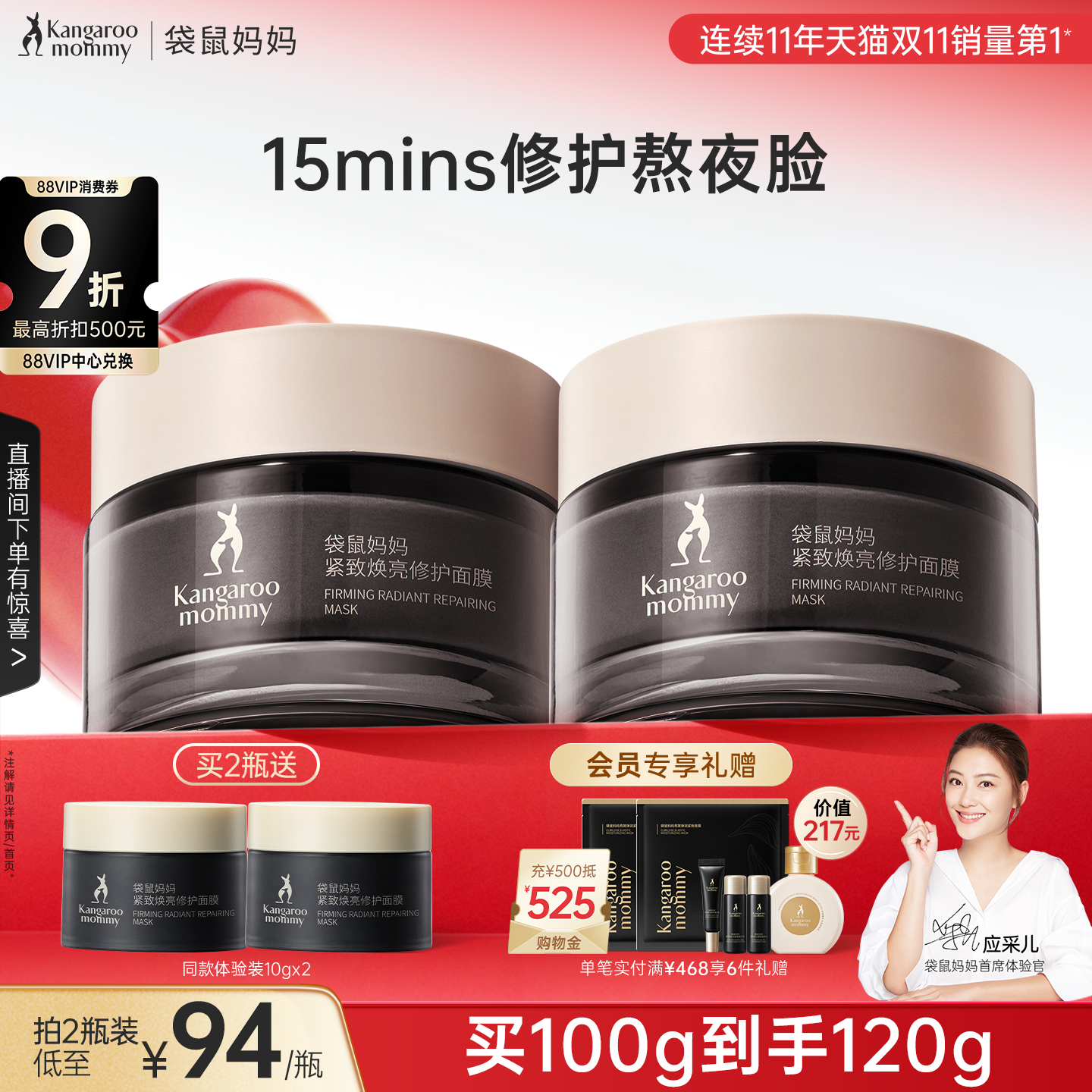 袋鼠妈妈光感透亮面膜补水女保湿去黄抗氧化多肤质专用孕妇护肤品