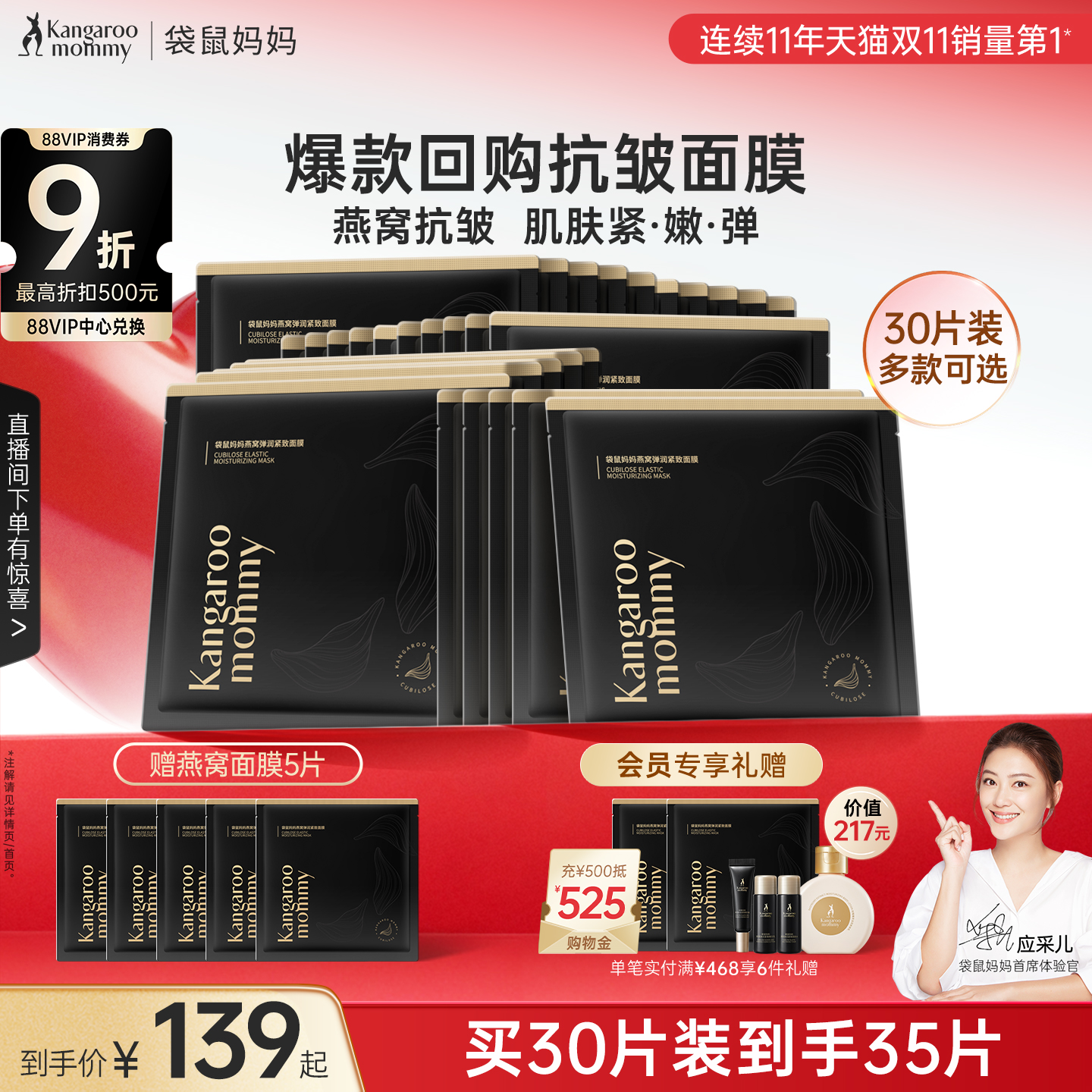 【双11开卖】袋鼠妈妈准孕妇燕窝面膜补水保湿滋润专用面膜30片