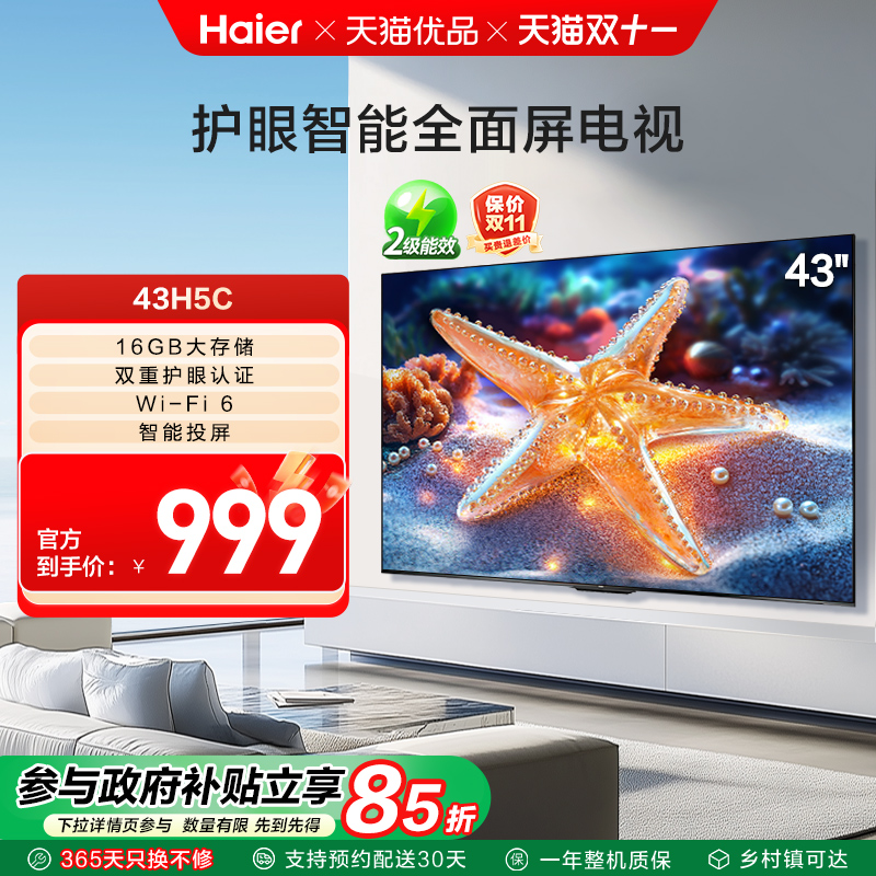 海尔电视43H5C 43英寸智能液晶网络电视机老人家用小屏政府补贴