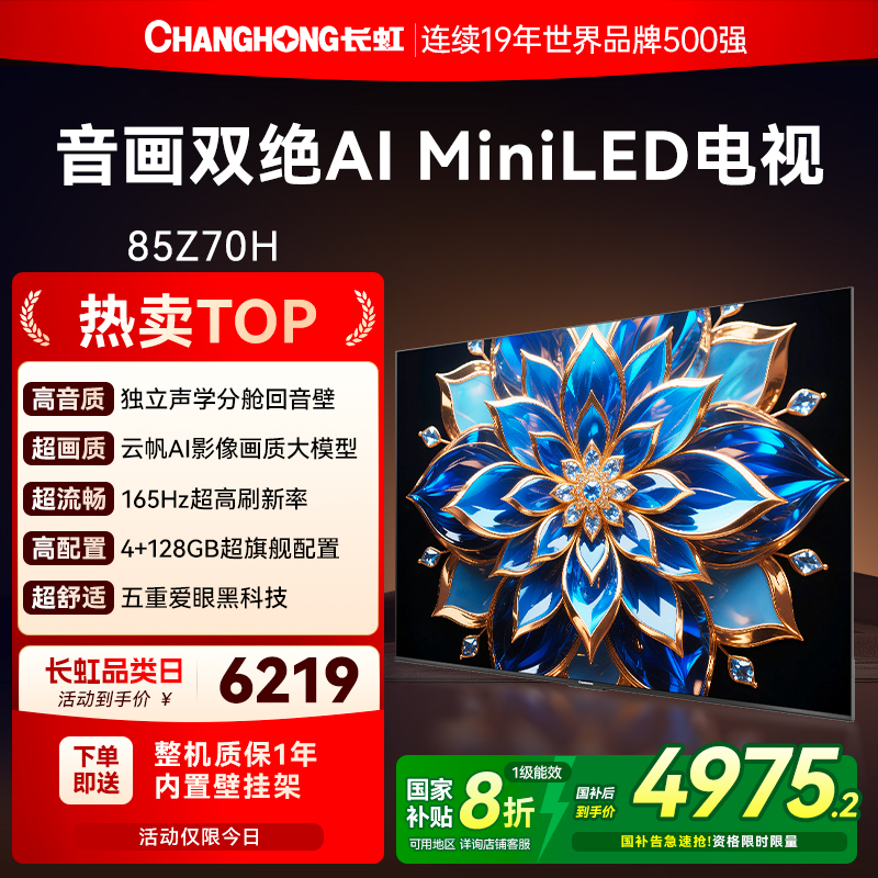 长虹欧宝丽85Z70H 85英寸全面屏165Hz智能高清网络电视机政府补贴