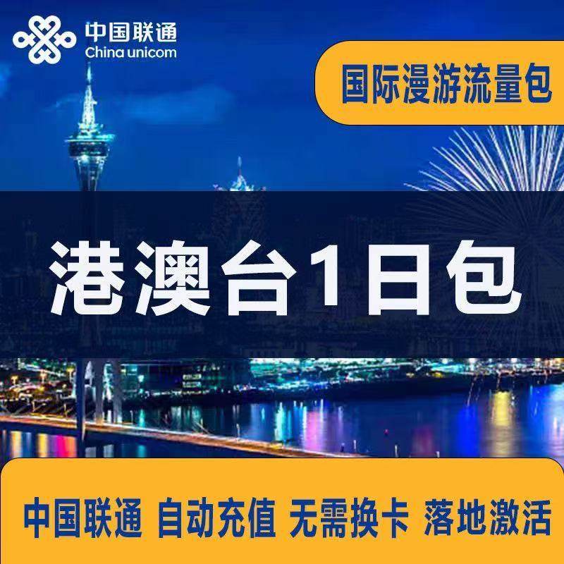 中国联通国际漫游流量充值香港澳门1天包 境外上网任用包自动充值