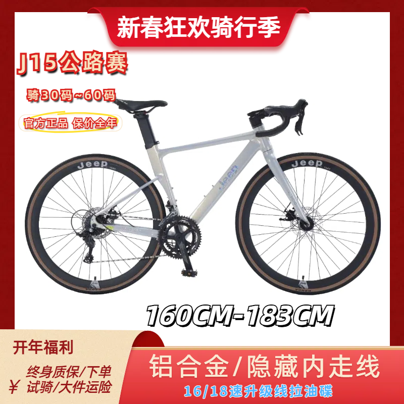 JEEP/吉普J15全内走线铝合金公路刹变一体自行车学生成人骑行竞速