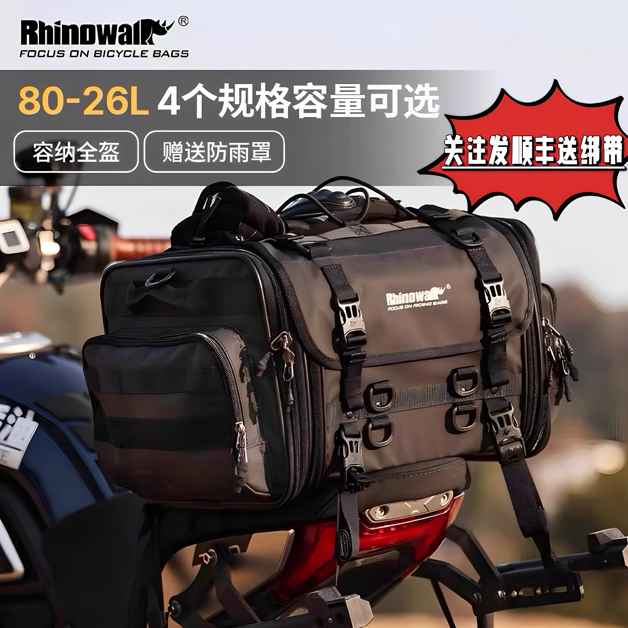 Rhinowalk摩托车后座包头盔包大容量防水骑行包长途尾包摩旅必备