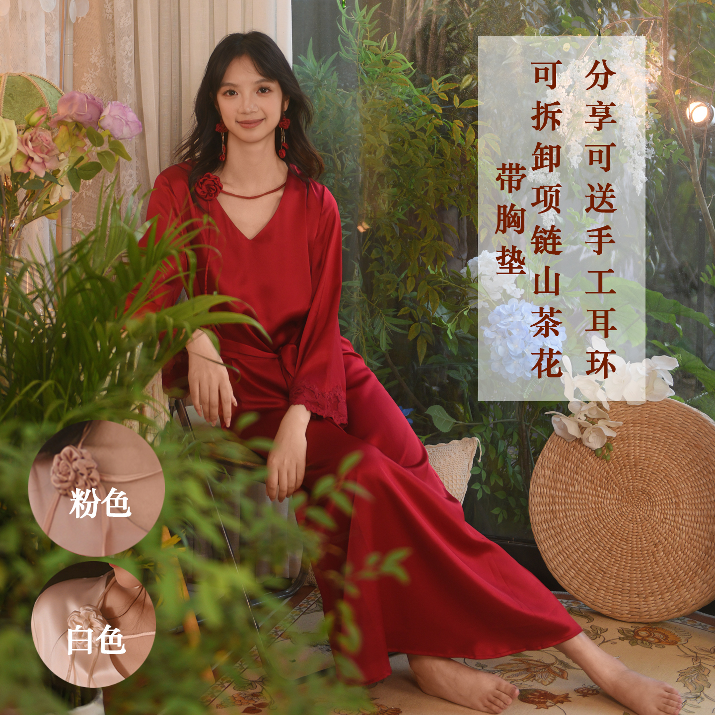7可改短胸垫重磅大码真丝睡衣睡裙桑蚕丝家居装度假外穿连衣裙女