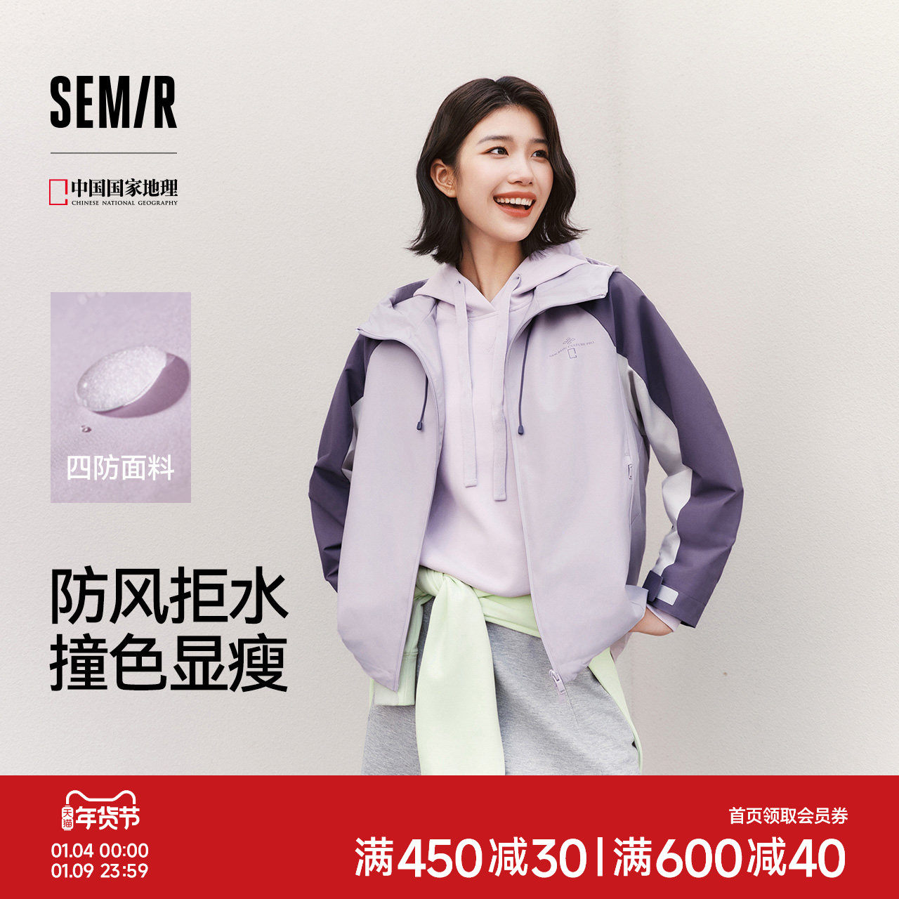 都市护身服|森马中国国家地理系列外套女春拼色三防防风户外夹克