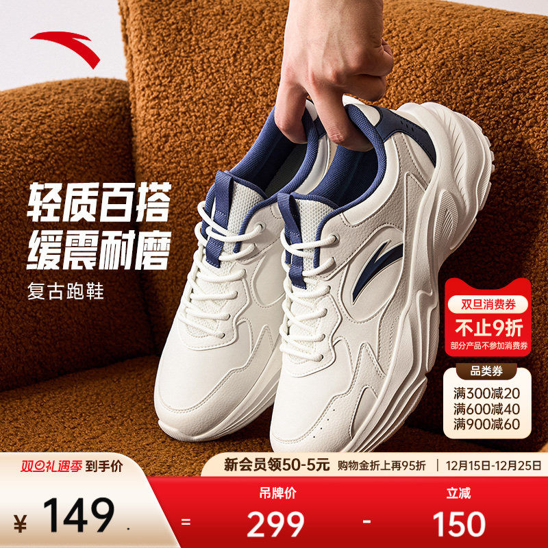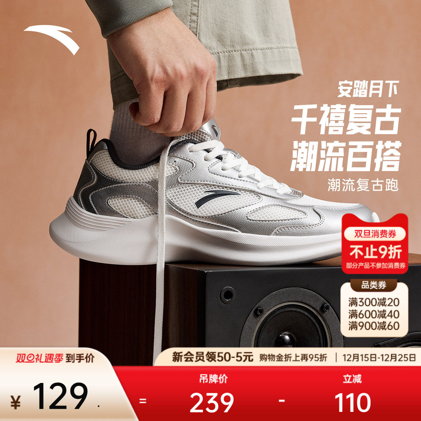 安踏月下丨轻量舒适复古潮流跑步鞋男2025冬季新款缓震回弹运动鞋