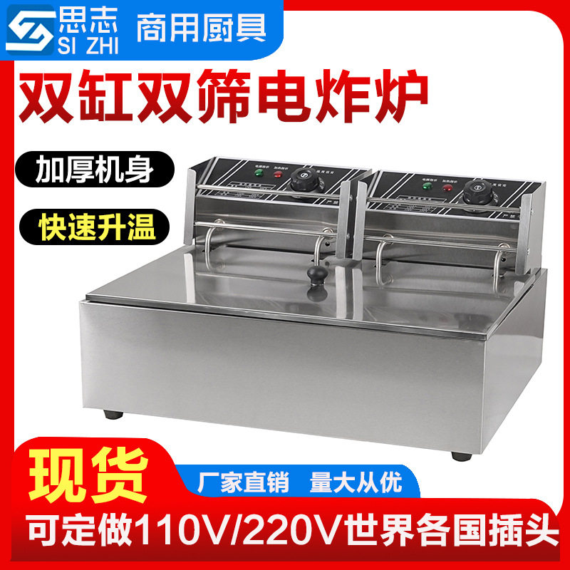油炸锅商用电炸炉双缸炸鸡排薯条油条油炸机恒温电炸锅台式油炸炉