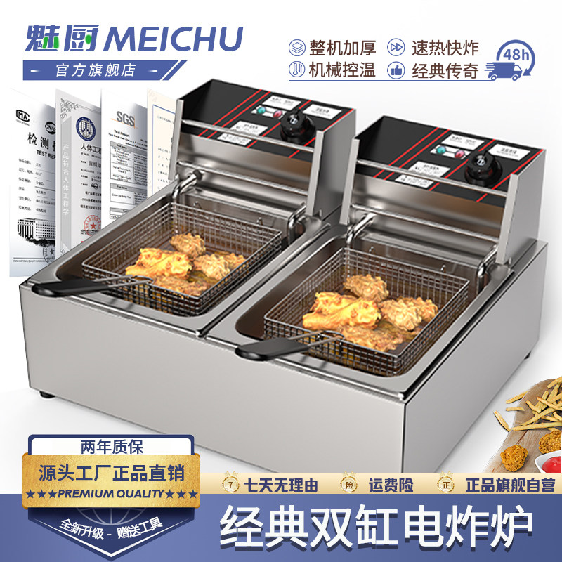 魅厨电炸炉商用大容量加厚多功能油炸炉摆摊单双缸炸油条薯条炸炉