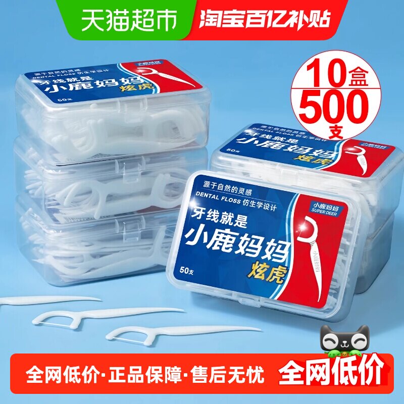 小鹿妈妈炫虎超细牙线棒便携剔牙签线盒50支*10盒家庭装牙线棒