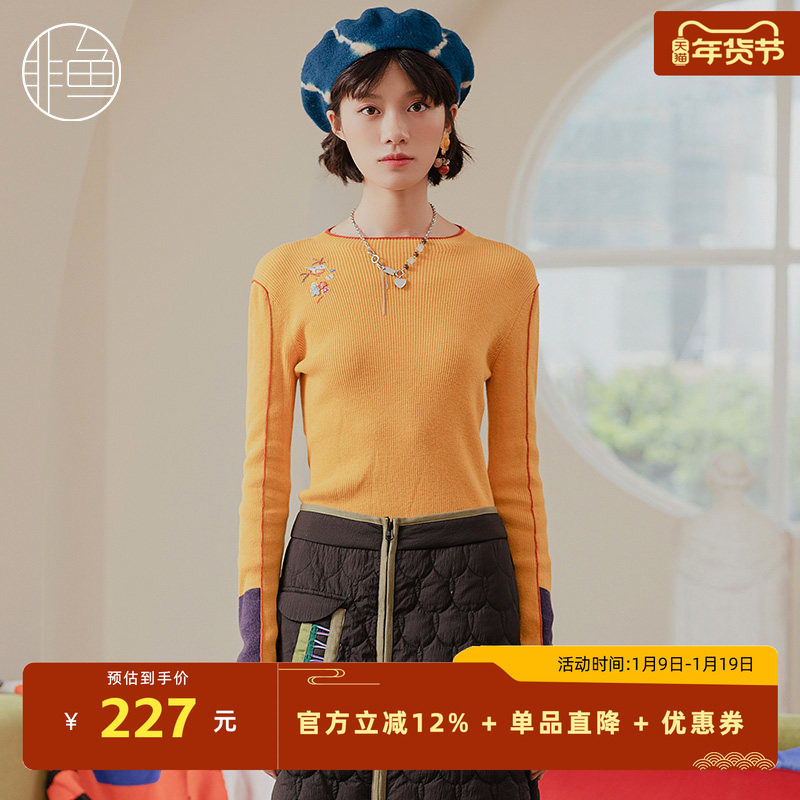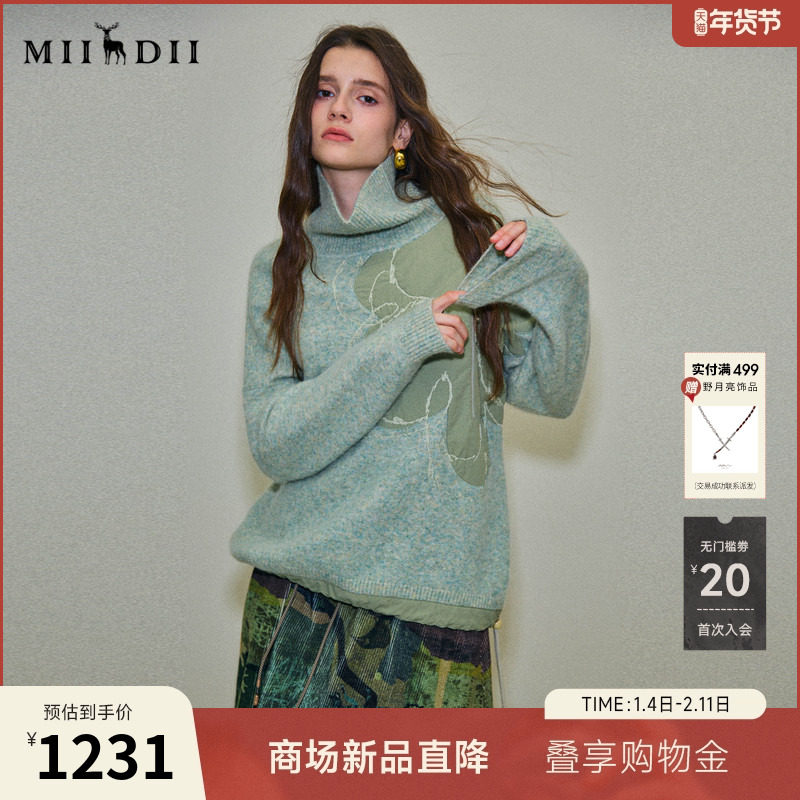 谜底套头针织衫长袖2025年冬季新品高龄宽松绣花保暖女254MZ1871