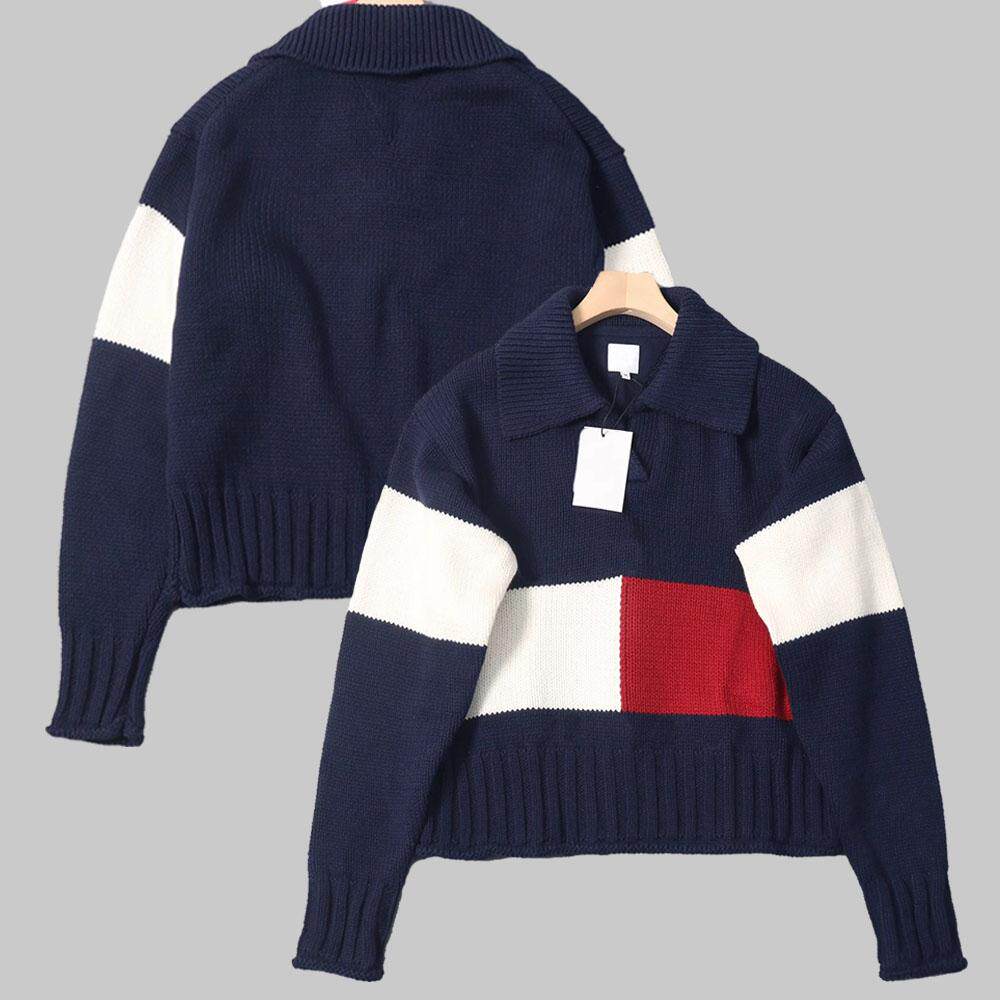 LEDIM WANGV领刺绣针织衫女2026春季新款藏青色长袖宽松套头毛衣