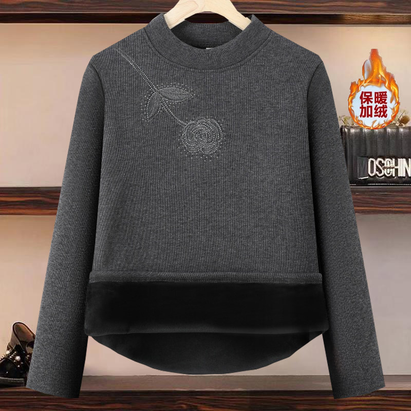 秋冬装新款刺绣长袖打底衫洋气妈妈百搭套头小衫加绒加厚针织T恤