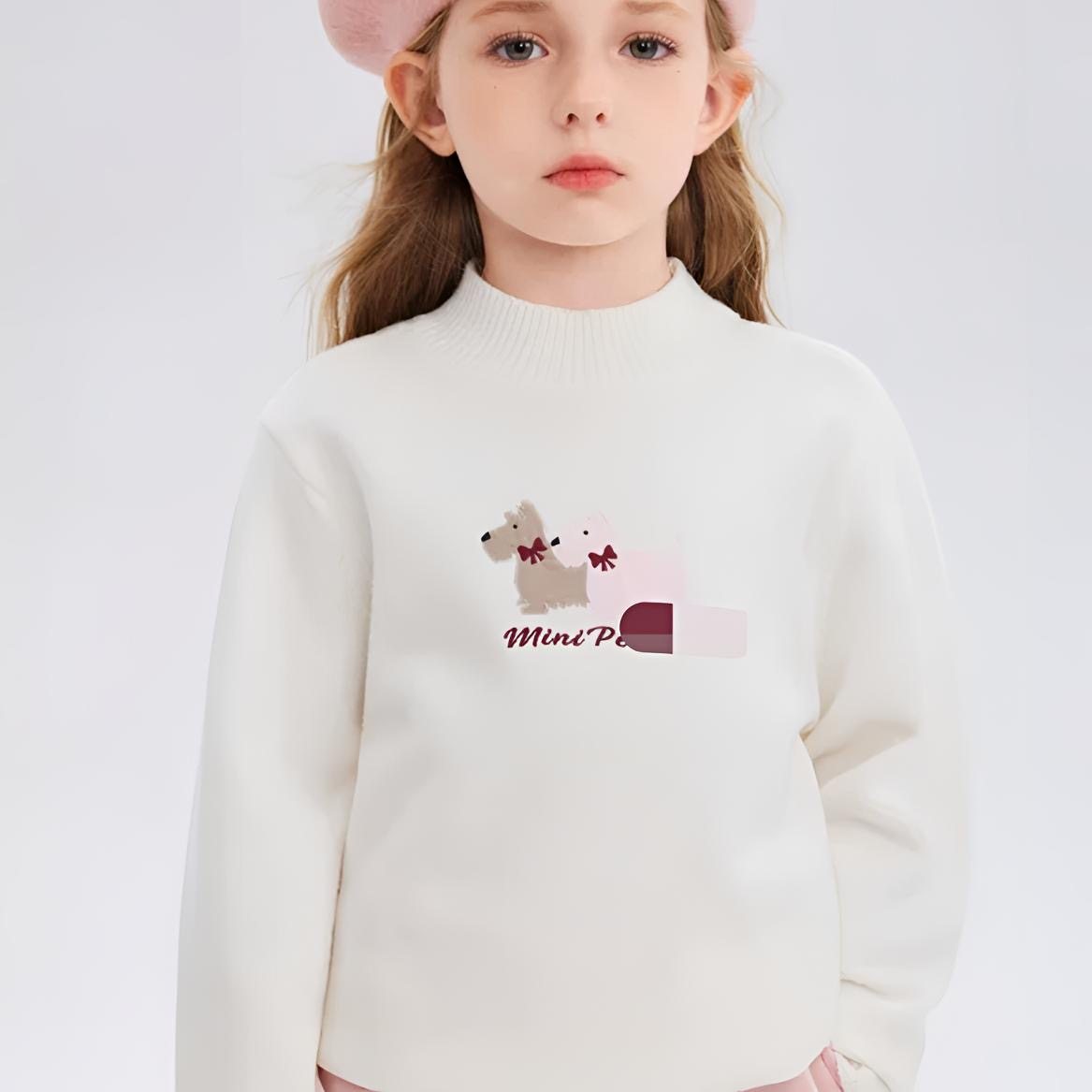 初羽家女童2025秋冬新款长袖半高领领毛衣加绒加厚套头刺绣针织衫