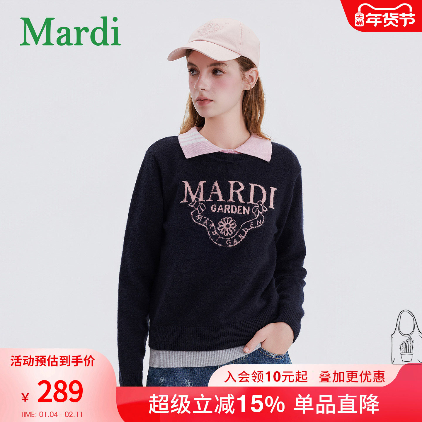 MARDI女款套头针织衫秋季新款刺绣字母时尚休闲显瘦百搭长袖上衣