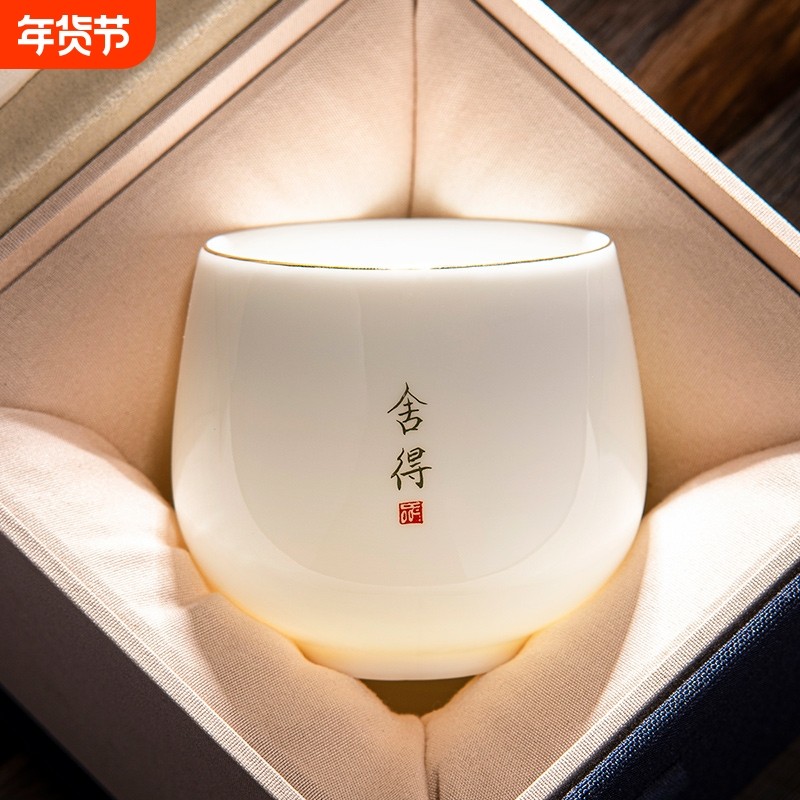 羊脂玉白瓷主人杯个人专用品茗杯喝茶杯子茶碗高档礼盒装功夫茶具