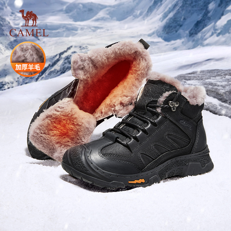 骆驼运动鞋男鞋冬季保暖情侣款防滑耐磨高帮厚底登山徒步鞋女鞋子