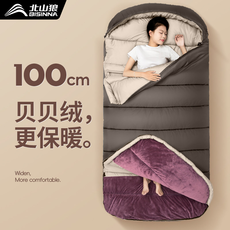 100cm加宽睡袋成人户外露营羽绒棉被子秋冬季单双人隔脏帐篷车用