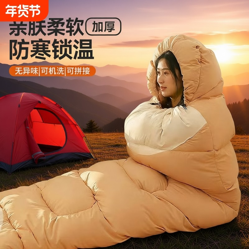 睡袋成人户外露营秋冬季加厚防寒羽毛睡袋被子两用便携办公室午休