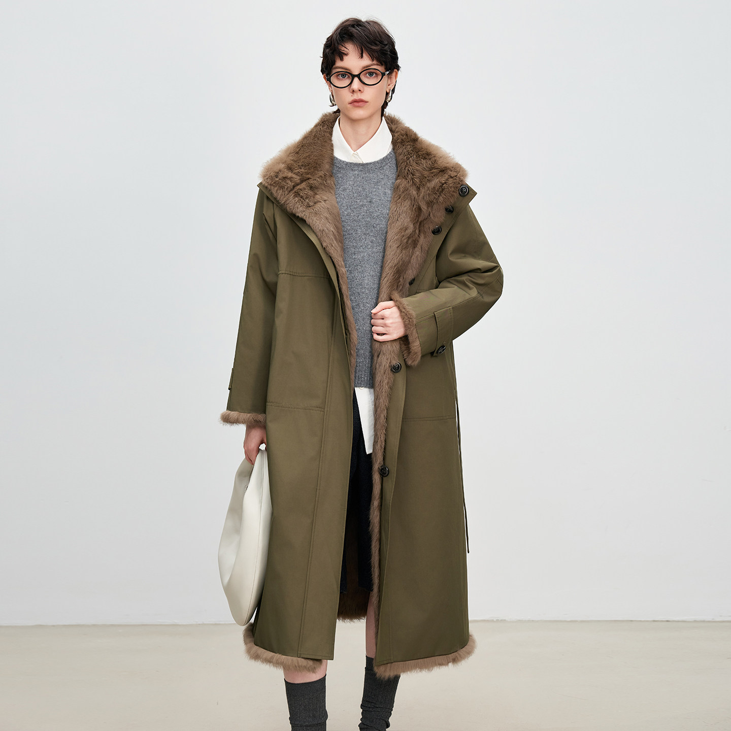 - 皮毛一体中长款大衣